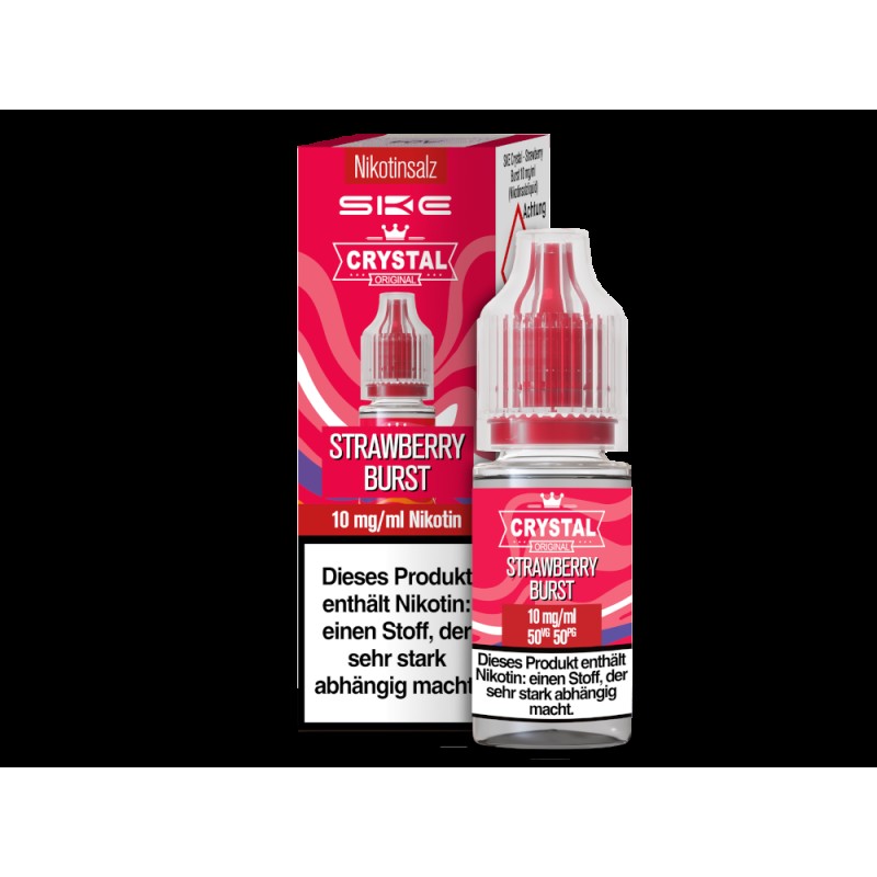 Pro 10 ml Flasche erhalten Sie Niktoinsalz Liquid der Marke SKE. Die Sorte Crystal Strawberry Burst entfaltet beim Verdampfen mit einer E-Zigarette den Geschmack von Erdbeeren. Die Stärke der SKE Nikotinsalz Liquids beträgt 10 mg/ml und 20 mg/ml.